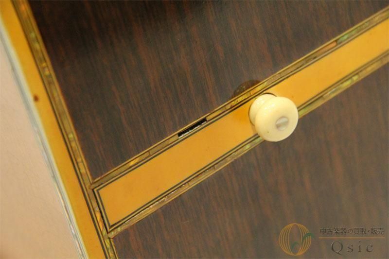ボディ外周のインレイや、指板のヘキサゴン・インレイ、特徴的な縦ロゴ部分にまで高級なアバロンで仕上げられた、目を瞠るような豪華なスペック。